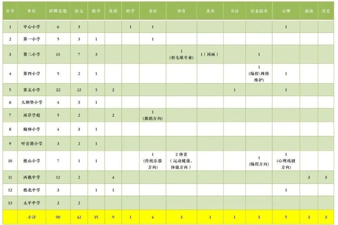 因缺岗补员,西樵多所公办中小学需招聘镇聘教师共90人,具体招聘学校计划如下。
