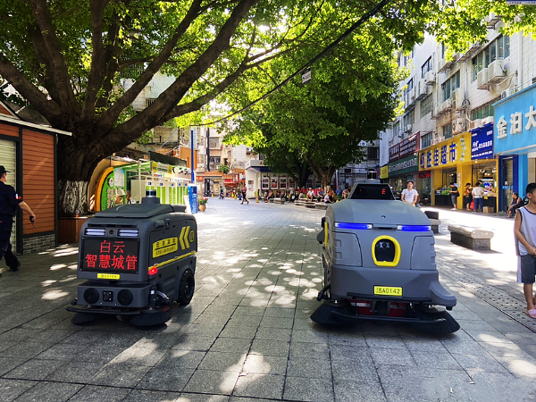 身穿白色或灰色“外套”,来回自动清扫,自主感应避障……目前,白云区在公园道路、城中村投放了4辆机器人清扫车,每小时可清扫面积超5000平方米,极大提升了环卫工作效率。