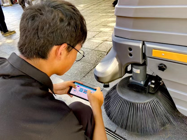 “机器人清扫车不仅实现了自动化无人清扫,还很安全、节能。”云洁科技广州公司生产的这两辆机器人清扫车刚刚投放至三元里村,它们根据设定好的线路,可以自动贴边清扫,还能自主避障。清扫期间,可以用手机控制。如果遇到紧急情况,还可以通过急停按钮,紧急制动。机器人清扫车里安装了传感器、防撞制动装置,多重保障机器人和行人的安全。