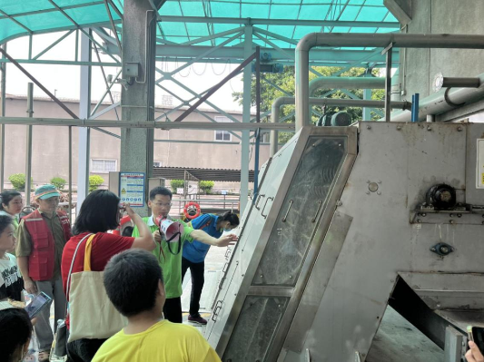广州市净水有限公司大坦沙分公司的哥哥们向参与活动的孩子介绍生活污水处理流程