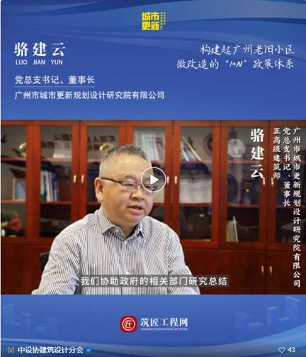为此,中国建筑设计行业网针对城市更新老旧小区改造热点话题,对广州更新院党总支书记、董事长骆建云进行线上专访。