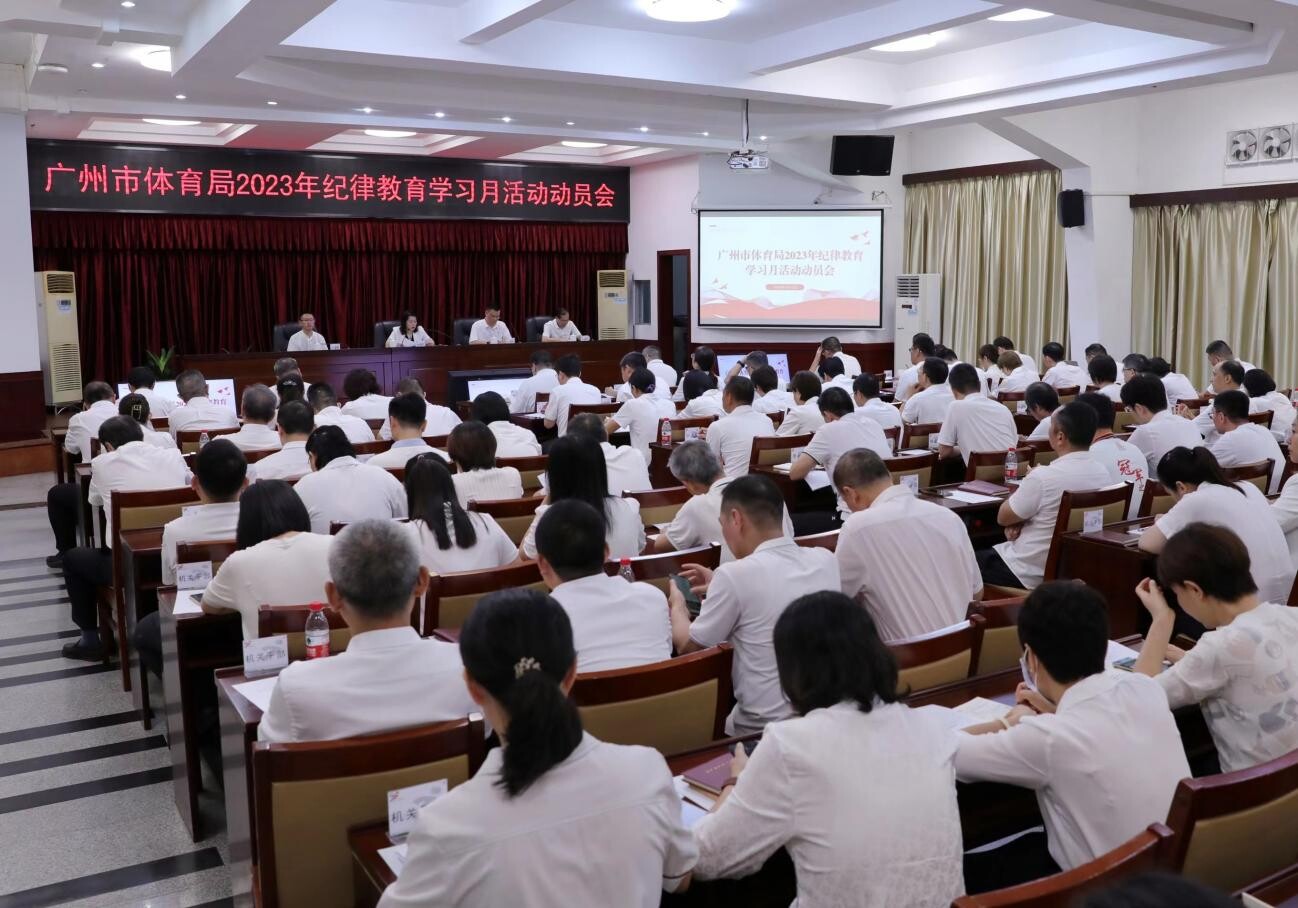8月15日上午,市体育局在局机关一楼会议厅召开2023年纪律教育学习月活动动员会。会议由局党组副书记、副局长林燕芬主持。局领导,市纪委监委驻市文化广电旅游局纪检监察组领导,广州体育职业技术学院负责人和所属党组织书记,局属各单位党政一把手,局机关全体干部,市足协负责人和党支部书记,以及局系统纪检干部队伍教育整顿全过程人员共105人参加会议。