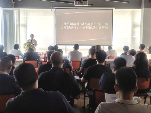 市市场监督管理局和市工业和信息化局的相关负责人分别做主题演讲,并介绍了市市场监督管理局在广州开创高质量发展新局面中制定的政策措施,市工业和信息化局在进一步优化民营经济发展环境、支持民营经济最大限度释放活力潜力的政策措施。与会民建企业家结合自身体验,分享了各自观点。