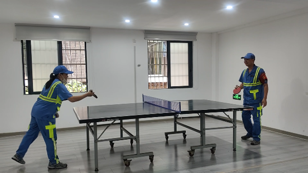 除提供各类书籍外,职工书屋内大到空调、冰箱,小到饮水机、充电排插、微波炉均一应俱全。此外,书屋角落里还配备了跑步机、乒乓球桌等健身器材,旨在将职工书屋打造成环卫工人最温暖、最贴心的学习“打卡点”,同时让广大环卫职工在工作之余能够充分锻炼和放松。