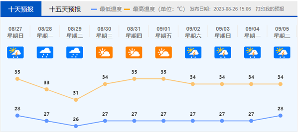 广东气象台预计, 8月28至29日有弱冷空气南下影响,广东省有中到强雷雨局部(大)暴雨,雷雨时伴有短时强降水和8级左右短时大风。