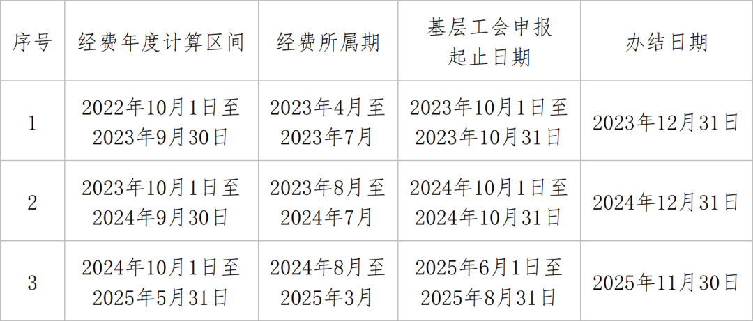 每个批次执行时,根据经费年度计算区间测算上缴经费,对于符合条件的小额缴费工会组织,全额返还对应批次经费所属期的工会经费。