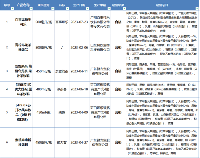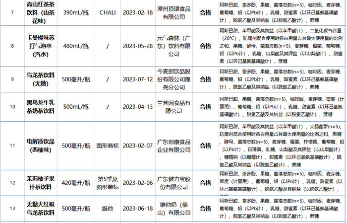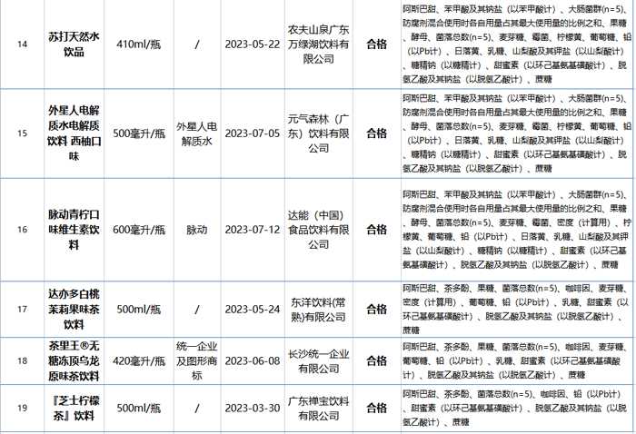根据相关检测标准,检测结果显示,抽检的19款饮料均符合其含量声称要求。