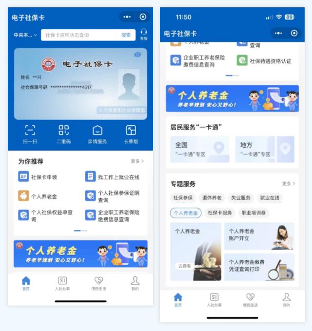 搜索微信小程序“电子社保卡”,通过以下方式进入“个人养老金”服务: