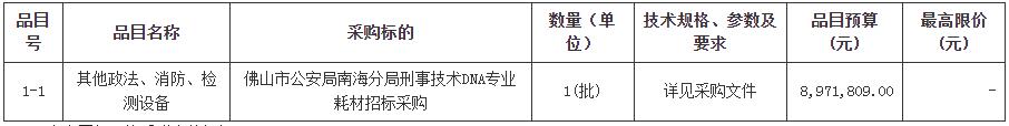 佛山市公安局南海分局刑事技术DNA专业耗材招标采购项目招标公告