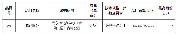 项目名称:2023年—2025年(二年)云东海公办学校(含幼儿园)食材配送项目