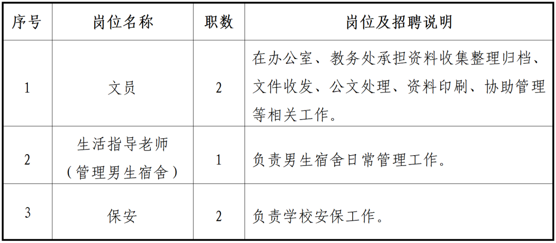5.应聘文员、生活老师岗位需高中、中专、中技及以上学历,专业不限;应聘保安岗位,需具有初中以上学历。