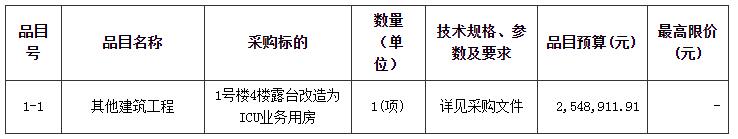 合同包1(1号楼4楼露台改造为ICU业务用房工程):