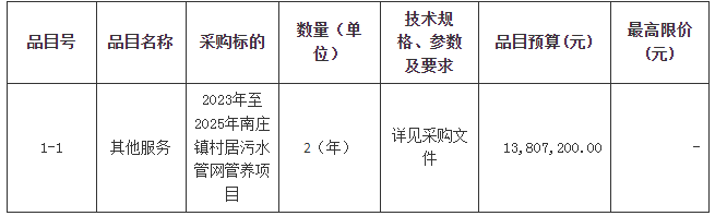 项目名称:2023年至2025年南庄镇村居污水管网管养项目