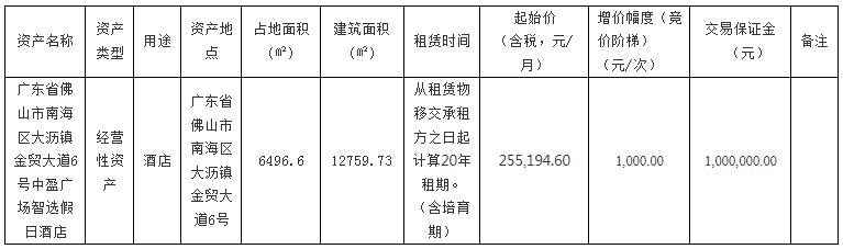 佛山市南海区大沥镇金贸大道6号中盈广场智选假日酒店网上租赁竞投公告