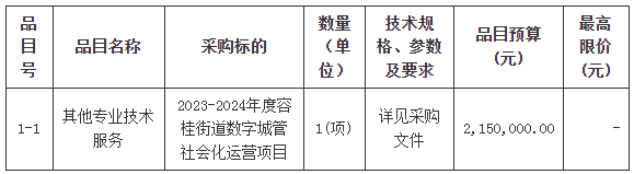 项目名称:2023-2024年度容桂街道数字城管社会化运营项目