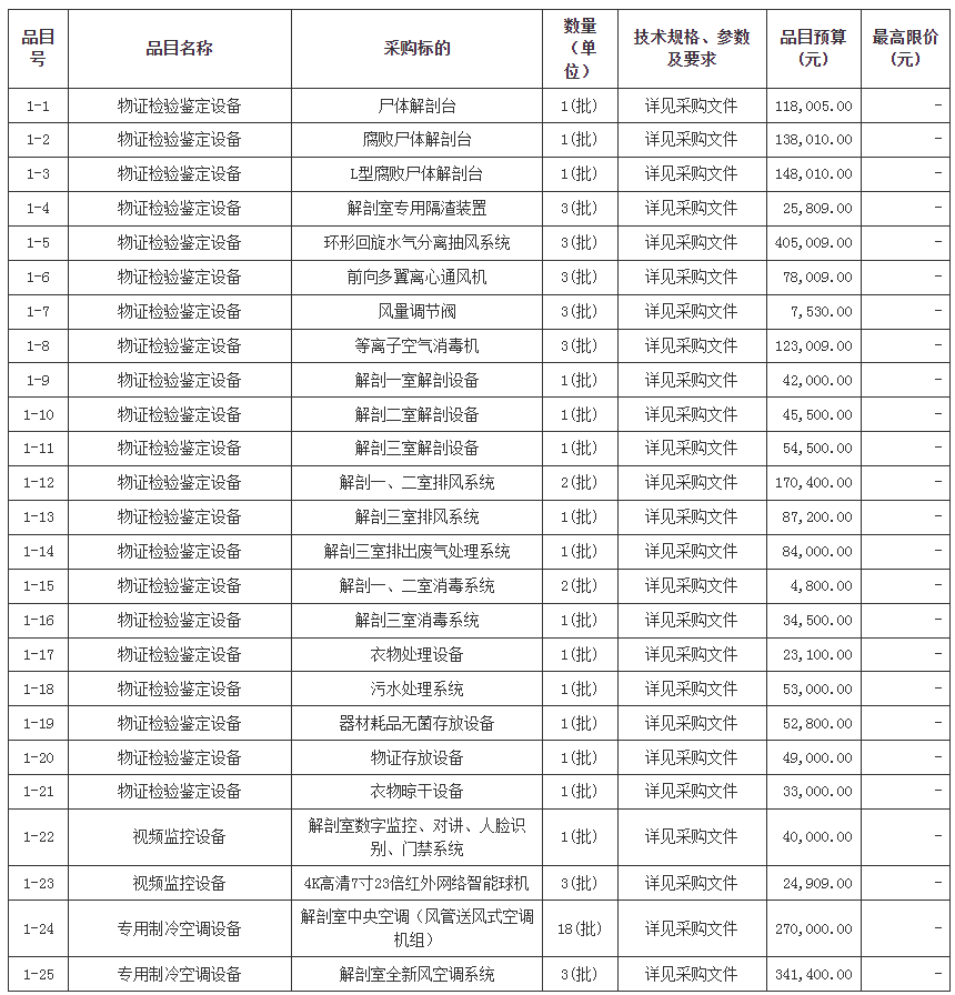 合同包1(佛山市公安局购置尸体解剖室专用成套设备及安装项目):