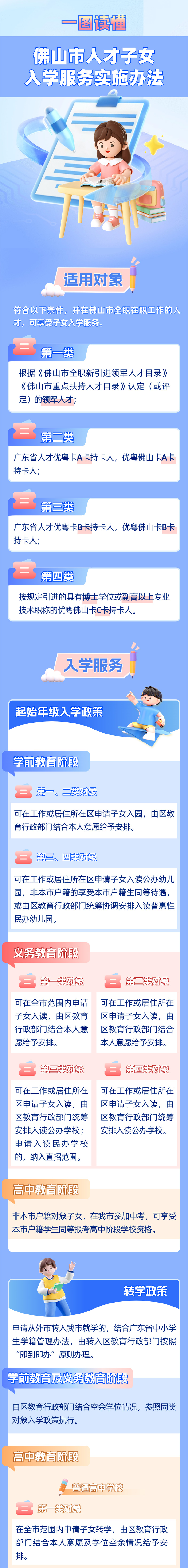 为完善人才子女入学服务机制,助力佛山建设高水平人才高地创新高地,近日,市教育局出台了《佛山市人才子女入学服务实施办法》(以下简称《办法》)。