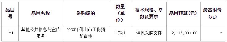 2023年佛山市工伤预防宣传项目采购项目的潜在供应商应在广东省政府采购网https://gdgpo.czt.gd.gov.cn/获取采购文件,并于 2023年10月19日 09时00分 (北京时间)前提交响应文件。
