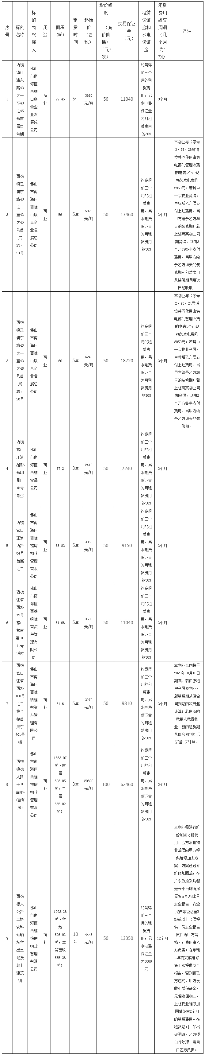 南海西樵镇公有物业招租【2023年第12期-2】(序号1-5物业标的)竞投公告