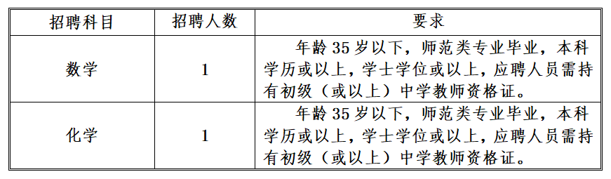 中小学美术、信息技术、心理健康临聘教师各1名。