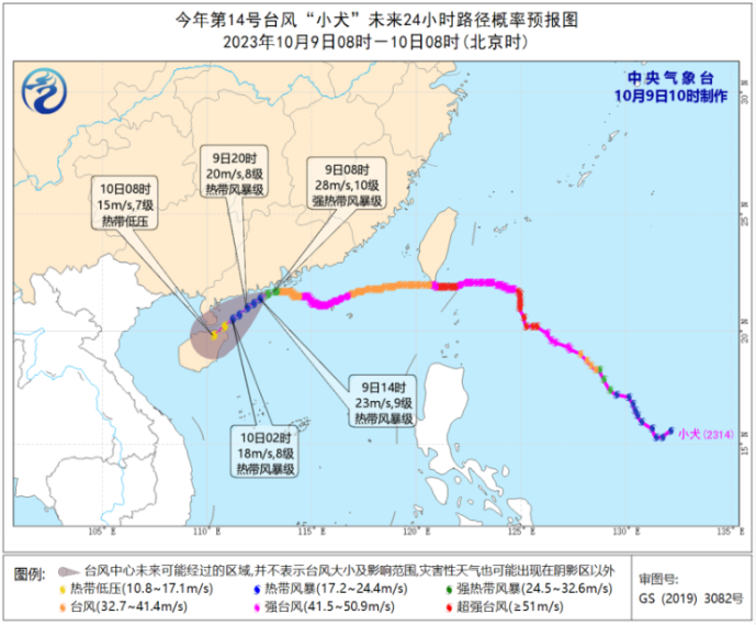 预计“小犬”将以10-15公里的时速向西偏南方向移动,强度逐渐减弱,中心逐渐远离我市。省气象台预计,受台风和冷空气叠加影响,10月9日-10日南海北部海面和广东沿海继续风雨明显。