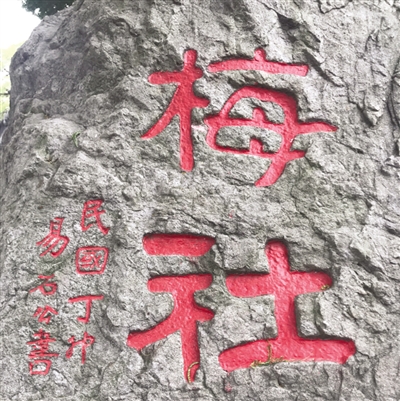 现仍矗立在纯阳观的巨石之上的“梅社”石刻,由易石公题写,至今保存完好,苍劲有力。