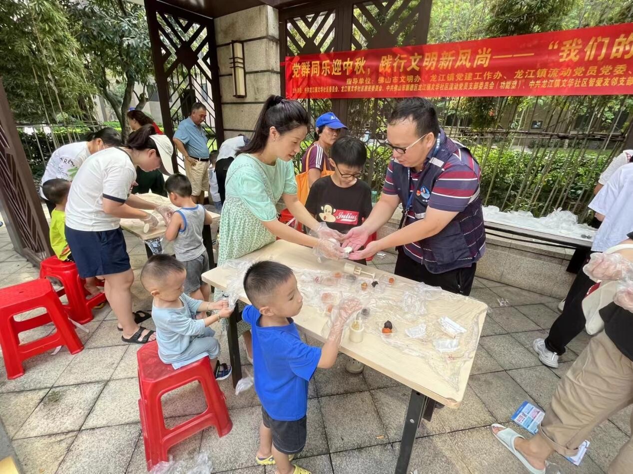 9月下旬,为加快新市民融入社区生活,提升新市民获得感,顺德龙江在新市民常住人口超过5万人的文华社区内开展“党群同乐迎中秋,践行文明新风尚——我们的节日·精神的家园”新市民融合系列活动。本次系列活动共开展10场,包括中秋晚会、游园会、中秋DIY体验和亲子朗诵比赛,活动内容形式丰富多样,覆盖辖区内新市民较为集中的各主要商住小区,共计超4000名新市民参与到其中,其乐融融。