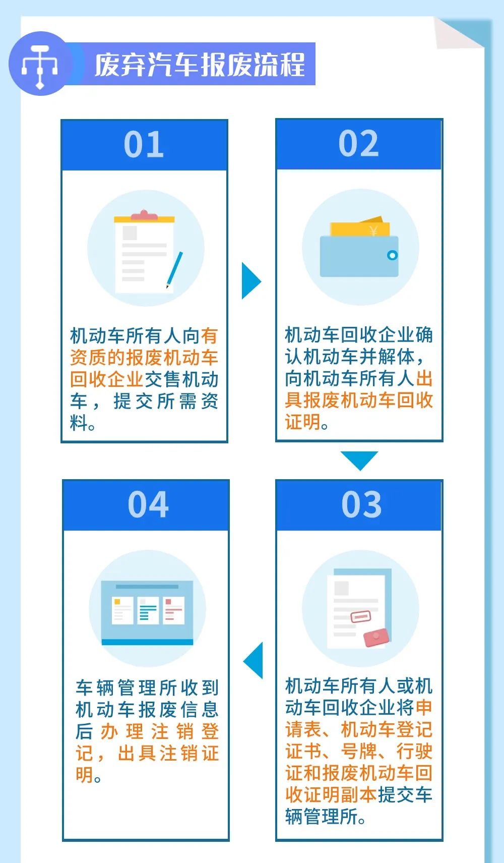 如果市民家里有废弃车辆,一定要到具备报废机动车回收拆解资质的企业进行报废处理。符合条件的车辆,在依法报废的整个过程中均不会产生任何额外的费用,不仅可以享受免费的拖车服务,还可以获得车辆报废残值。