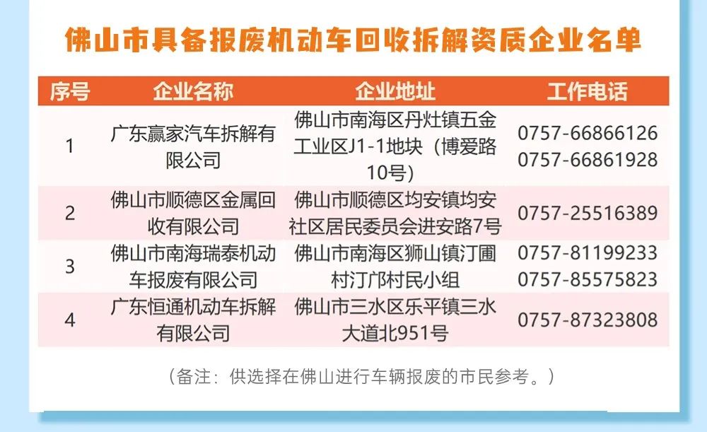 佛山市共有4家具备报废机动车回收拆解资质的企业。
