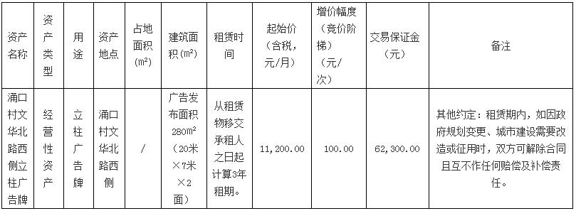 南海区大沥镇涌口村文华北路西侧立柱广告牌网上租赁竞投公告