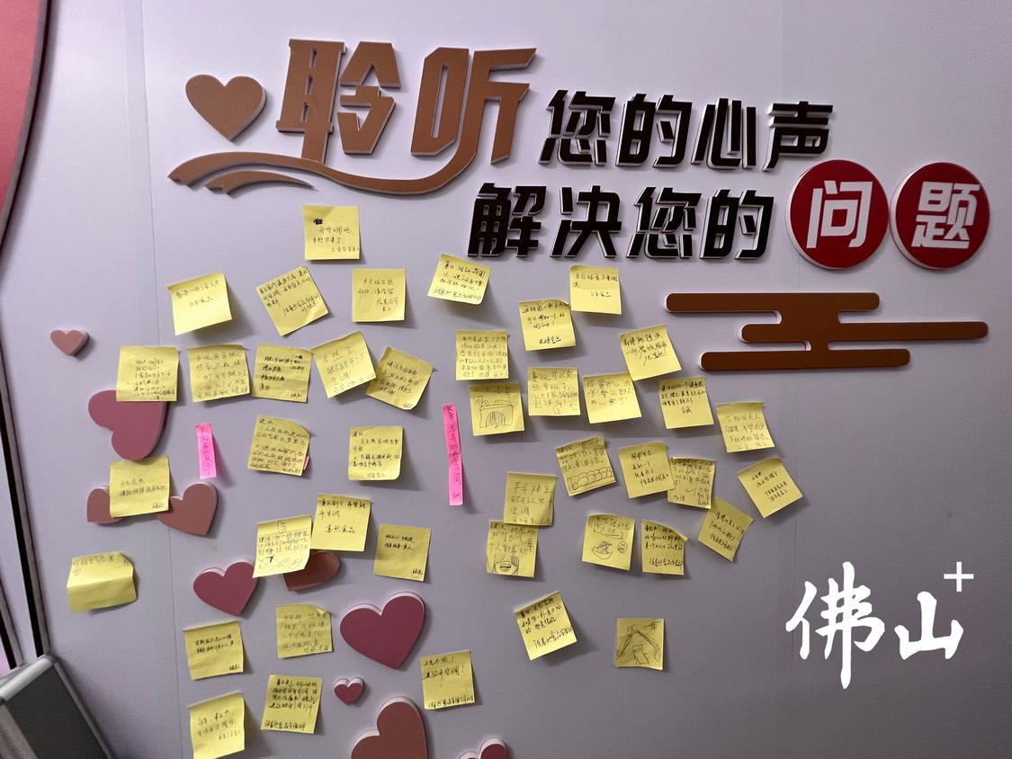 中国(三水)国际水都饮料食品基地党群服务中心内的“民声墙”。佛山市新闻传媒中心记者杨立韵摄