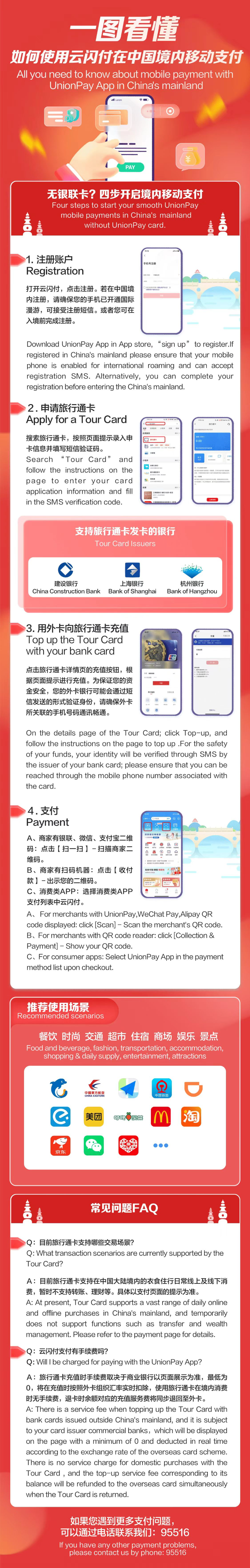 “旅行通卡”是指对于无银联卡的入境人员,可凭护照等证件可在云闪付APP线上申领、充值“旅行通卡”,使用云闪付APP扫码支付。