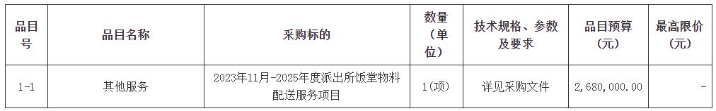 项目名称:2023年11月-2025年度派出所饭堂物料配送服务项目