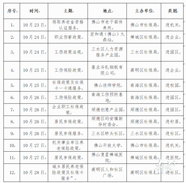 佛山社保部门开展“六进”社保政策宣讲重点活动预告