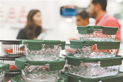 据介绍,该公司最受欢迎的产品之一是近几年新研发的浮雕系列保鲜盒。贾飞说,“其特别之处在于采用特殊工艺将平面玻璃压制为竖条纹外型,盒身竖纹凹凸有致。采用了高硼硅耐热玻璃,材质更稳定,能耐受零下20摄氏度到520摄氏度的极端温度。”另外,这款保鲜盒还能一盖两用,“可以用电动或者手动抽气泵将盒内空气一键抽出,食品的保鲜度和保鲜时长会有明显的提高,一般食物可多存放10-30天时间。”