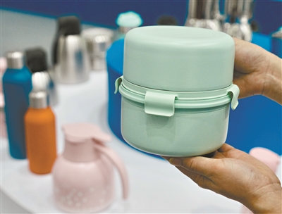 另一款身上有“龙鳞”花纹的保鲜盒也让不少采购商频频说“酷”。“这款花纹既体现了中国文化,又能防手滑易持握。”贾飞说。