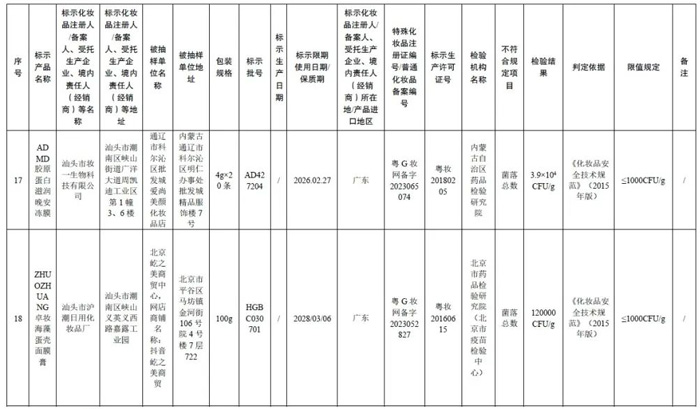 根据《化妆品监督管理条例》《化妆品生产经营监督管理办法》《化妆品抽样检验管理办法》,国家药品监督管理局要求广东省药品监管部门对上述不符合规定化妆品涉及的备案人、受托生产企业等依法立案调查,责令相关企业立即依法采取风险控制措施并开展自查整改。