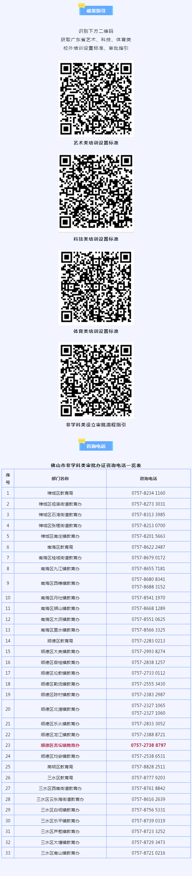 近日,佛山市教育局印发《致全市非学科类校外线下培训机构告知书》,提醒全市现存非学科类培训机构(已持营业执照或民办非企业法人登记证书但尚未取得办学许可证的机构)在2023年12月1日前办理办学许可证。内容如下↓↓↓