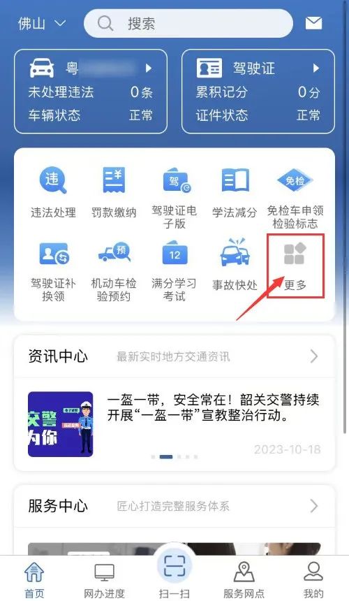 1、登录交管12123APP,点击【更多】,进入【业务中心】页面。