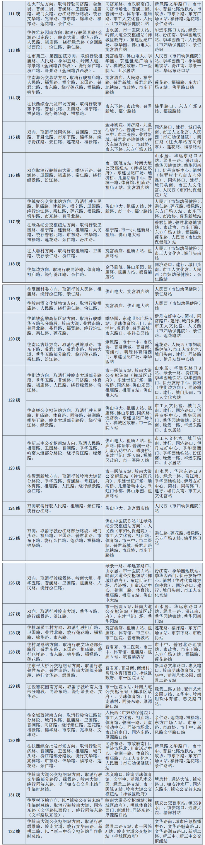双向取消停靠站点:登山大道口、南海丝厂、荣军医院、江浦西路中、文明桥、吉水新村、樵和路北、西樵镇第五小学(爱国)、佛山宋城、樵和路隧道口、樵和路南。