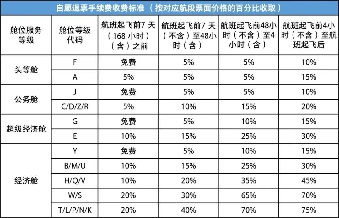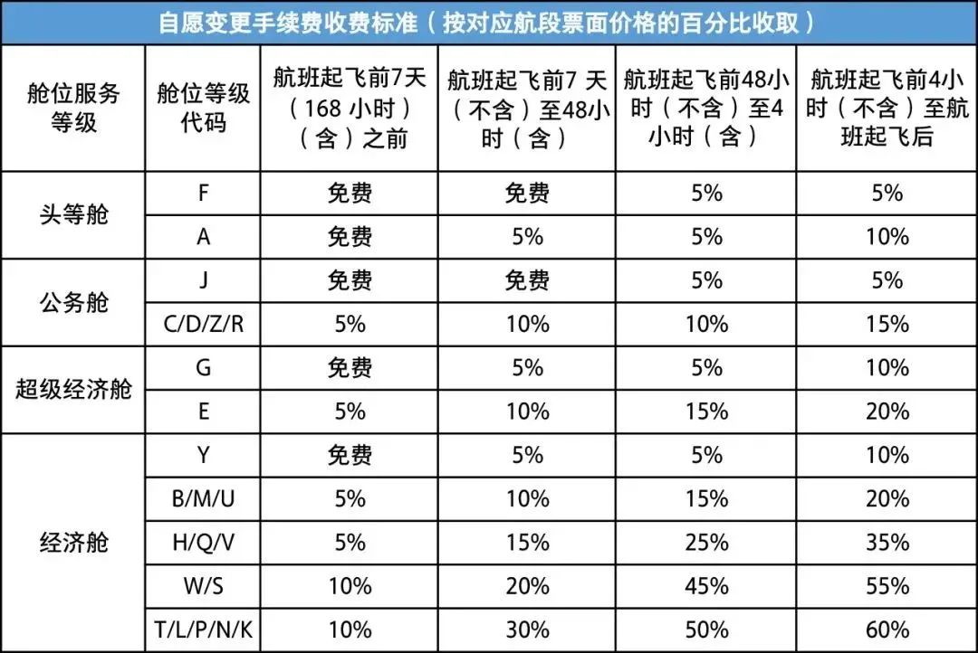 一、调整时间段划分。具体时间段划分修改为“航班起飞前7天(含)之前”、“航班起飞前7天(不含)至48小时(含)”、“航班起飞前48小时(不含)至4小时(含)”、“航班起飞前4小时(不含)至航班起飞后”。四个时间段内的退改手续费收费标准不同且时间计算精确到分钟。换开客票后退票仍按照原始客票(即第一张客票)的退票规则收取退票手续费。