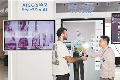 随着广交会日益以科技创新为引领,高科技、智能化产品也日趋成为展会的“引流”新亮点。记者走访时留意到,一家企业引得众多参展商和采购商纷纷驻足停留。原来,这家名为Style3D的企业除了带来服装研发端最新的数字化技术成果与应用,还展示了全新的AI产品。