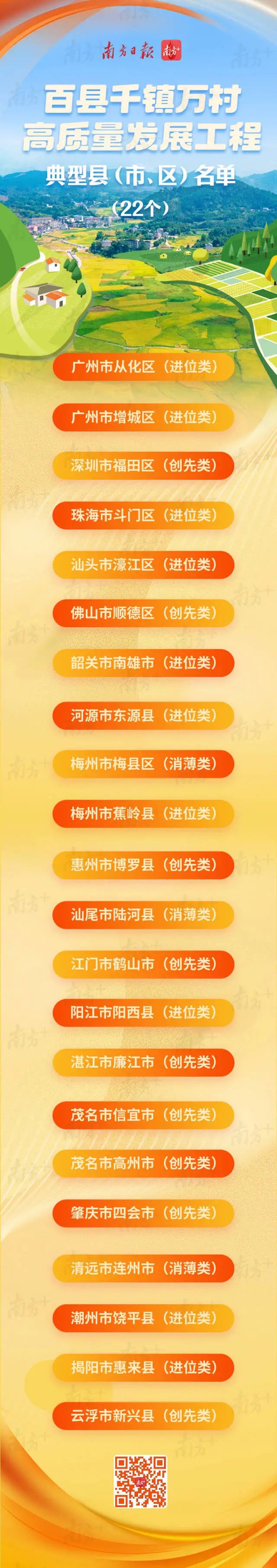 11月6日,广东省“百县千镇万村高质量发展工程”首批典型县镇村名单公布,共有22个县、110个镇、1062个村入选,其中佛山市顺德区入选创先类典型县。