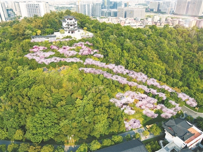 樱花向来被认为是爱情与希望的象征,“樱园”与中国传统文化中的“姻缘”谐音,有着“情定樱园,一世姻缘”的美好寓意,恰好与花都湖国家湿地公园内的区民政局婚姻登记处对外服务窗口“岭南缘”遥相呼应,共同寄托了对新人们喜结良缘的真挚祝福。建成后的珞珈樱园,粉樱开满山林谷,在花都阁下见证新人们的美好相遇,或将成为花都甚至广州全新的青年男女热门网红打卡点、纪念地,吸引广大游客前来观赏。