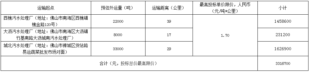 注:(1)西樵污水处理厂及大沥污水处理厂服务期为2年,城北污水处理厂服务期为1年6个月。