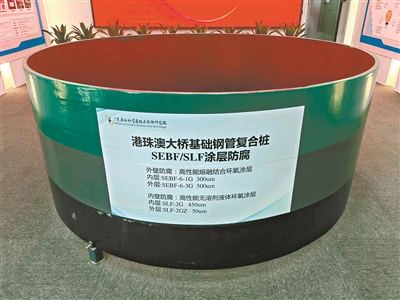 走进广东腐蚀科学与技术创新研究院(以下简称为“腐创院”),一根巨大的钢管占据了大堂中央位置。据该院科技合作部负责人李轲新介绍,这是用于支撑港珠澳大桥桥墩的钢管复合桩,通过应用腐创院团队曾参与研发的新型防腐蚀技术,成功将材料用量减少了三分之二,同时能抵御长达120年的自然腐蚀。