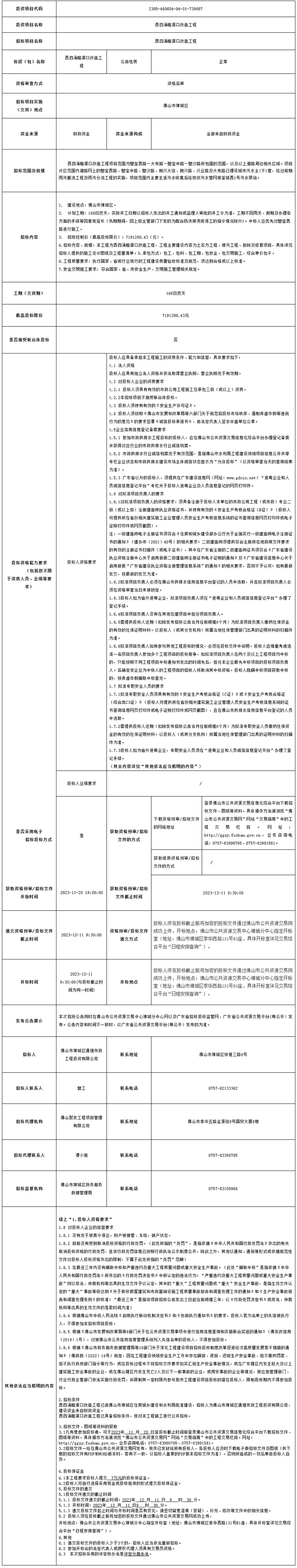 佛山市禅城区张槎西四涌暗渠口改造工程招标公告