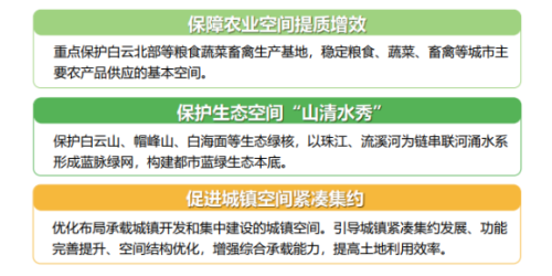 白云区严格落实底线管控,统筹“三线”划定,全区(含空港经济区)划定了耕地保护目标58.37平方公里,永久基本农田48.98平方公里,生态保护红线64.32平方公里,城镇开发边界347.65平方公里。聚焦“一园两城三都四区”重大发展平台,统筹安排农业、生态、城镇空间,构建科学合理、高质量的美丽国土空间格局。