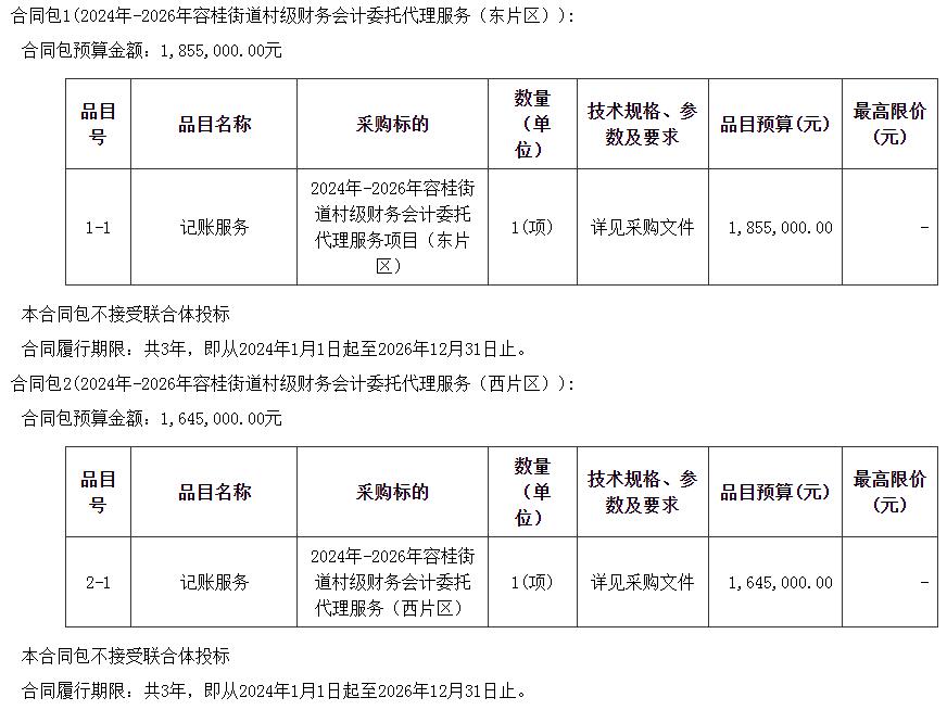 项目名称:2024年-2026年容桂街道村级财务会计委托代理服务项目