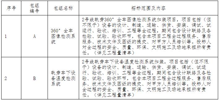2.1 项目名称:2023年-2025年二号线360°全车图像检测系统、轨旁车下设备温度检测系统项目